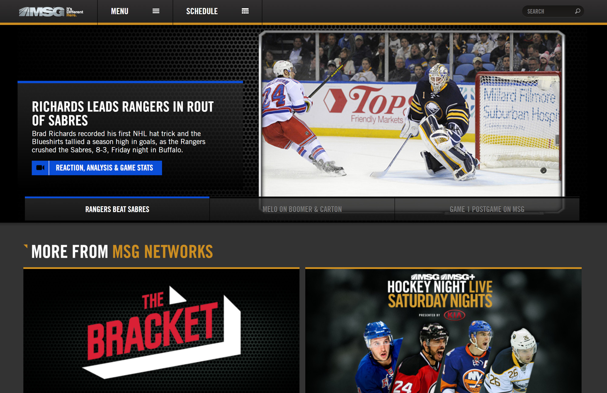 Isobar's first responsive site, for which I pioneered the UX/visual/engineering workflow. Front-end templates and interactivity for a CMS-powered television network site, including a second-screen experience for live sports that updated in real time.