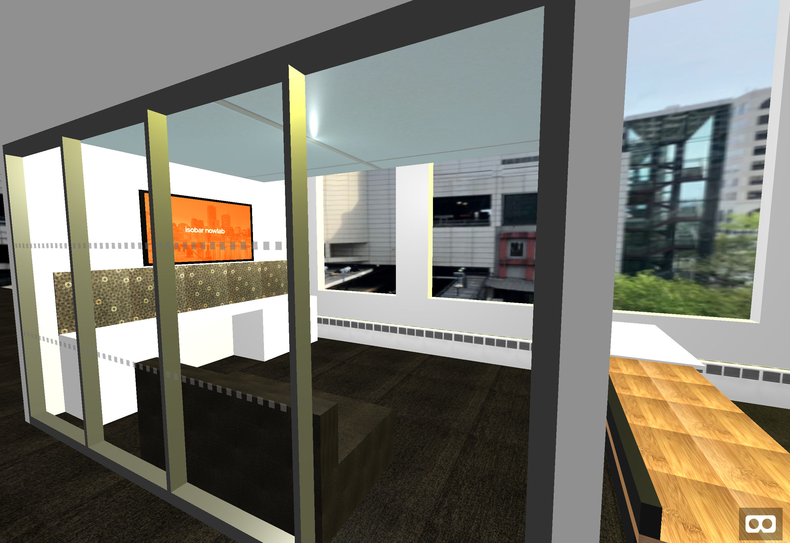 A room-scale demo of WebVR technology matching the dimensions of the Isobar NowLab office.