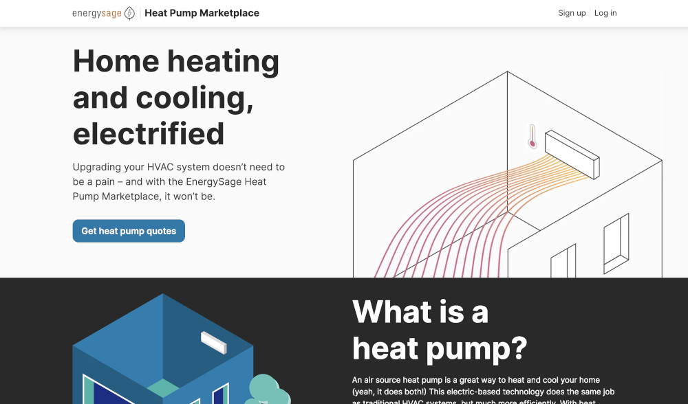 Landing page, multi-step onboarding flow, and project dashboard workflow for a marketplace matching homeowners to heat pump installers.